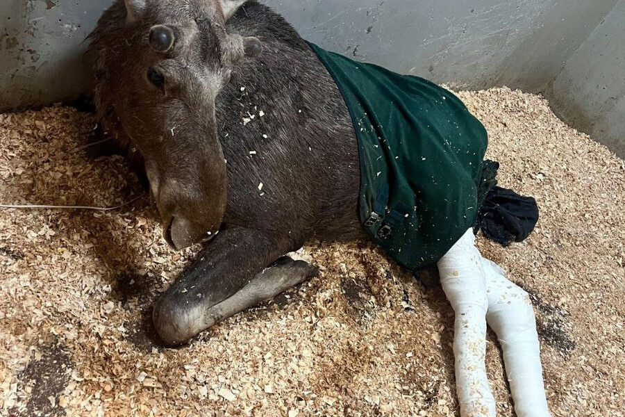По информации канала, медики ввели животному седативные и обезболивающие препараты, наложили гипс и повязки. По предварительной информации, лосенку могут провести операцию.