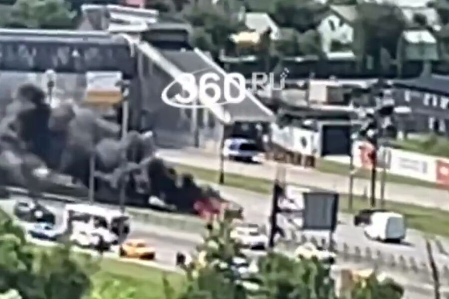 На опубликованных в сети кадрах видно, что автомобиль горит на обочине дороги.