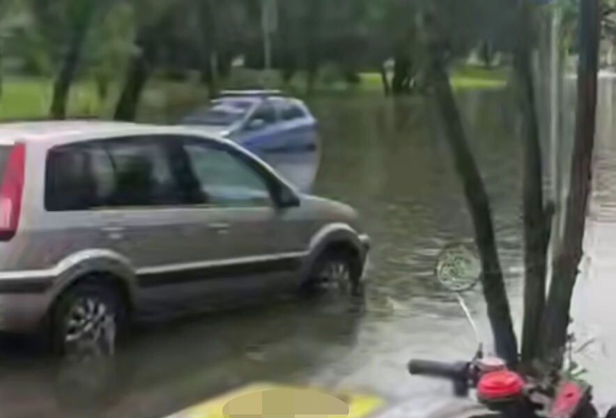 Отмечается, что река вышла из берегов в районе Ростокино. В результате вода затопила дороги и автомобили.
