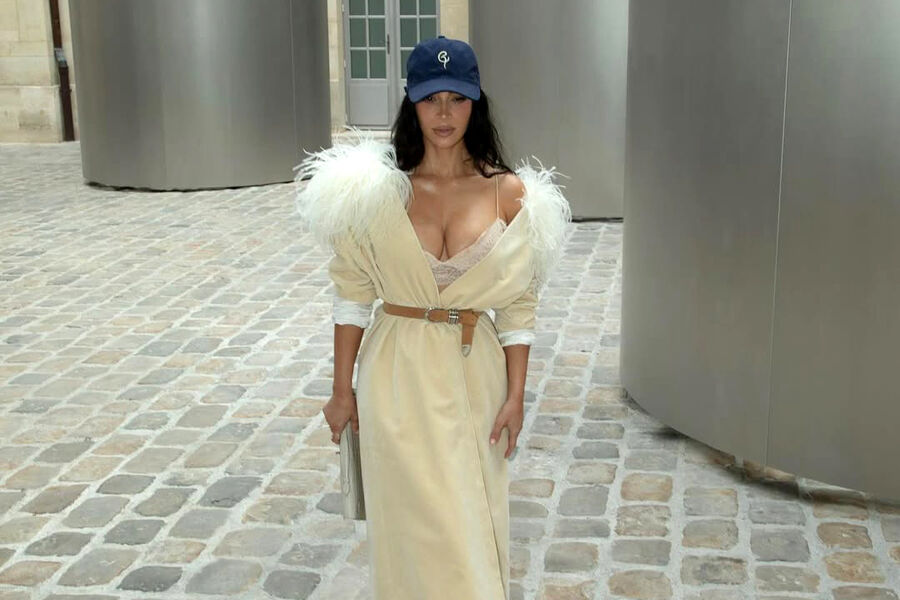 44-летняя Ким Кардашьян показала в Instagram (владелец компания Meta признана в России экстремистской и запрещена) фото, сделанные во время пребывания в Париже. Модель позировала в светло-желтом плаще с перьями и кружевном платье с глубоким декольте. Бизнесвумен добавила к образу синюю кепку и коричневый ремень. Однако интернет-пользователи не оценили необычное сочетание вещей и высмеяли наряд знаменитости.