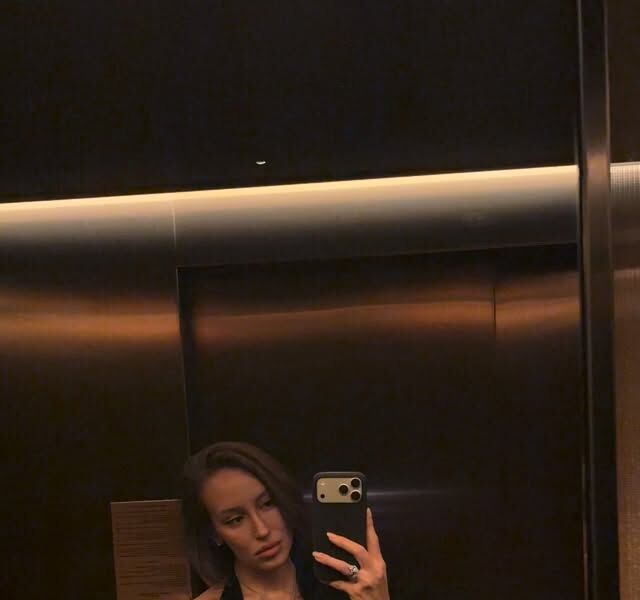 Валентина Иванова оголила часть груди в черном блестящем топе. Волосы модель выпрямила и сделала вечерний макияж. Съемку она устроила в лифте перед предновогодним мероприятием.