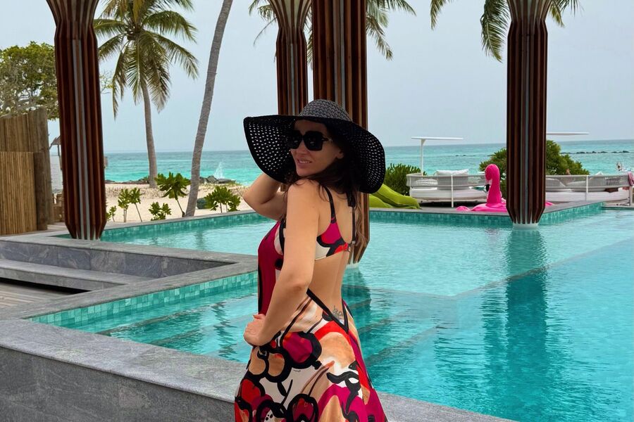 48-летняя Анфиса Чехова позировала перед камерой в разноцветном макси-платье с вырезом на спине, которое дополнила широкой соломенной шляпой и черными солнцезащитными очками. Телеведущая была запечатлена с распущенными волосами и без макияжа. Снимок был сделан во время отдыха знаменитости с женихом, продюсером Александром Златопольским на Мальдивах.