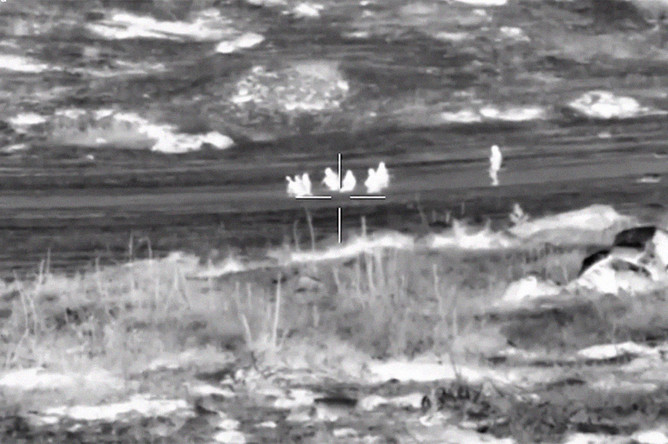 На кадрах, снятых с помощью прибора ночного видения, продемонстрирована ликвидация одиночных боевиков и групп противника.