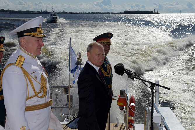 Во время Главного Военно-морского парада в Санкт-Петербурге глава страны отдал дань памяти и уважения всем поколениям флотоводцев, моряков, корабелов и первопроходцев. «Благодаря их стойкости, таланту, преданности Родине, Россия навсегда обрела славу великой морской державы», — сказал он, напомнив, что уже три столетия ВМФ защищает российский суверенитет.