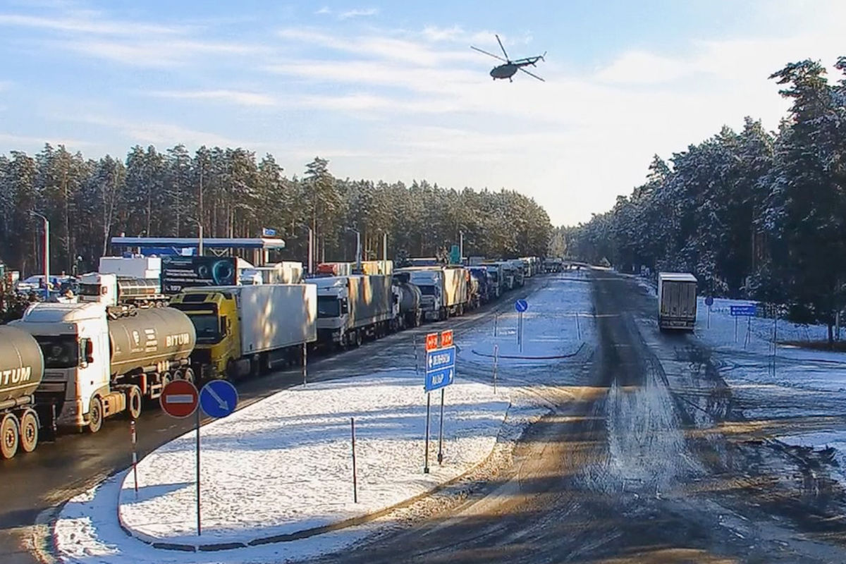 Белорусские пограничники опубликовали и видео — на кадрах с камер наблюдения видно, как над лесом летит вертолет.