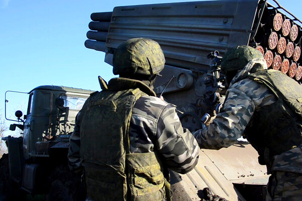 Работа расчета реактивной системы залпового огня «Град» на Запорожском направлении