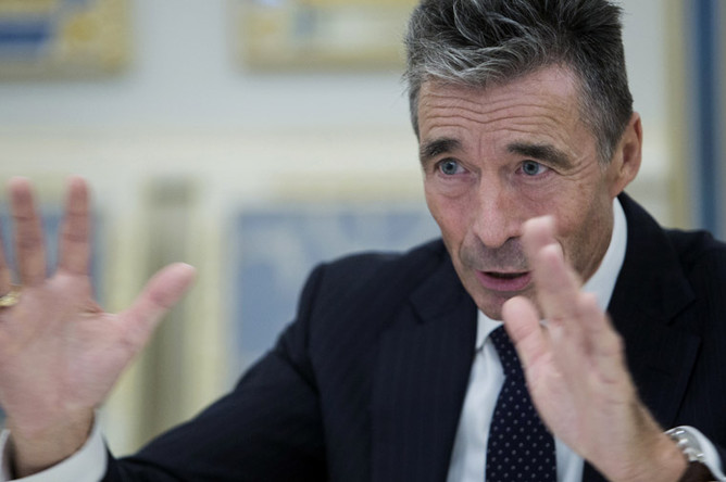 Во время интервью журналист сказал, что Россия «продолжает агрессивную политику» и стягивает войска к своим западным границам. Расмуссен поддержал это мнение и отметил, что «ключевым риском» для Белоруссии является повторение «украинского сценария с войной и аннексией».