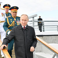 Главный парад проходит в Санкт-Петербурге и Кронштадте. Президент Владимир Путин уже провел осмотр кораблей. Всего в нем примут участие 54 корабля, в числе которых три иностранных фрегата — из Индии, Ирана и Пакистана, а также 48 воздушных судов и свыше четырех тысяч военнослужащих.