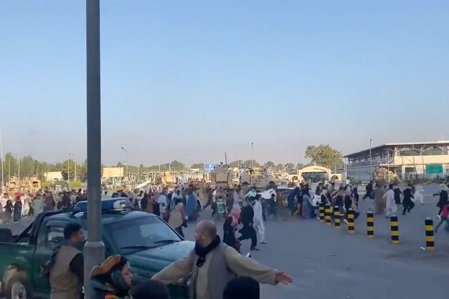 В Кабуле тысячи людей укрылись в аэропорту, пытаясь выбраться из страны. Несколько человек погибли — из-за давки или пытаясь улететь на шасси самолетов американских ВВС.
