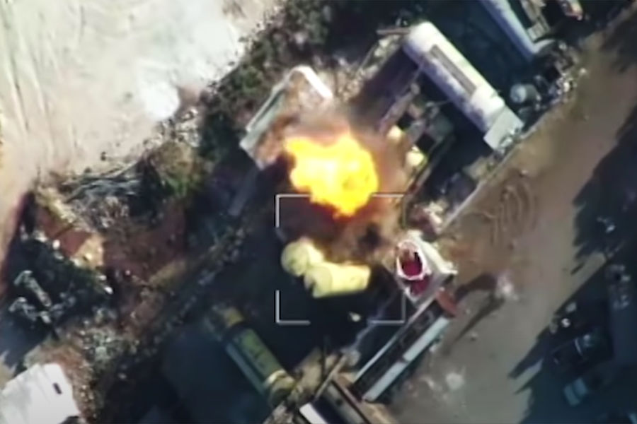 Ранее были опубликованы видеокадры авиаудара по позициям сирийских формирований, который был сделан в апреле 2020 года при помощи барражирующего боеприпаса «Ланцет».