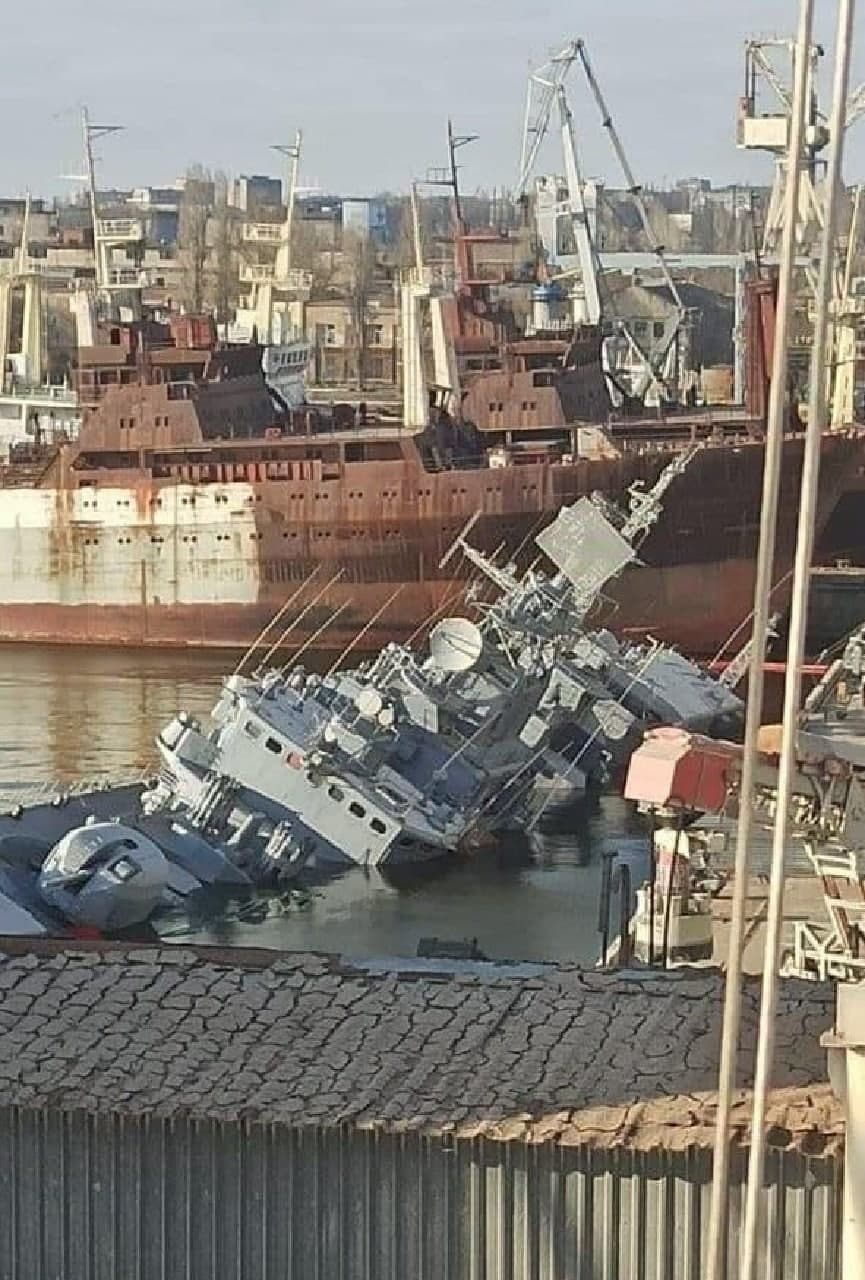 Отмечается, что украинские власти рассчитывают восстановить его в будущем. По данным украинских СМИ, корабль был затоплен в первый день российской операции на Украине. С него предварительно сняли все вооружение, так как он находился на ремонте.