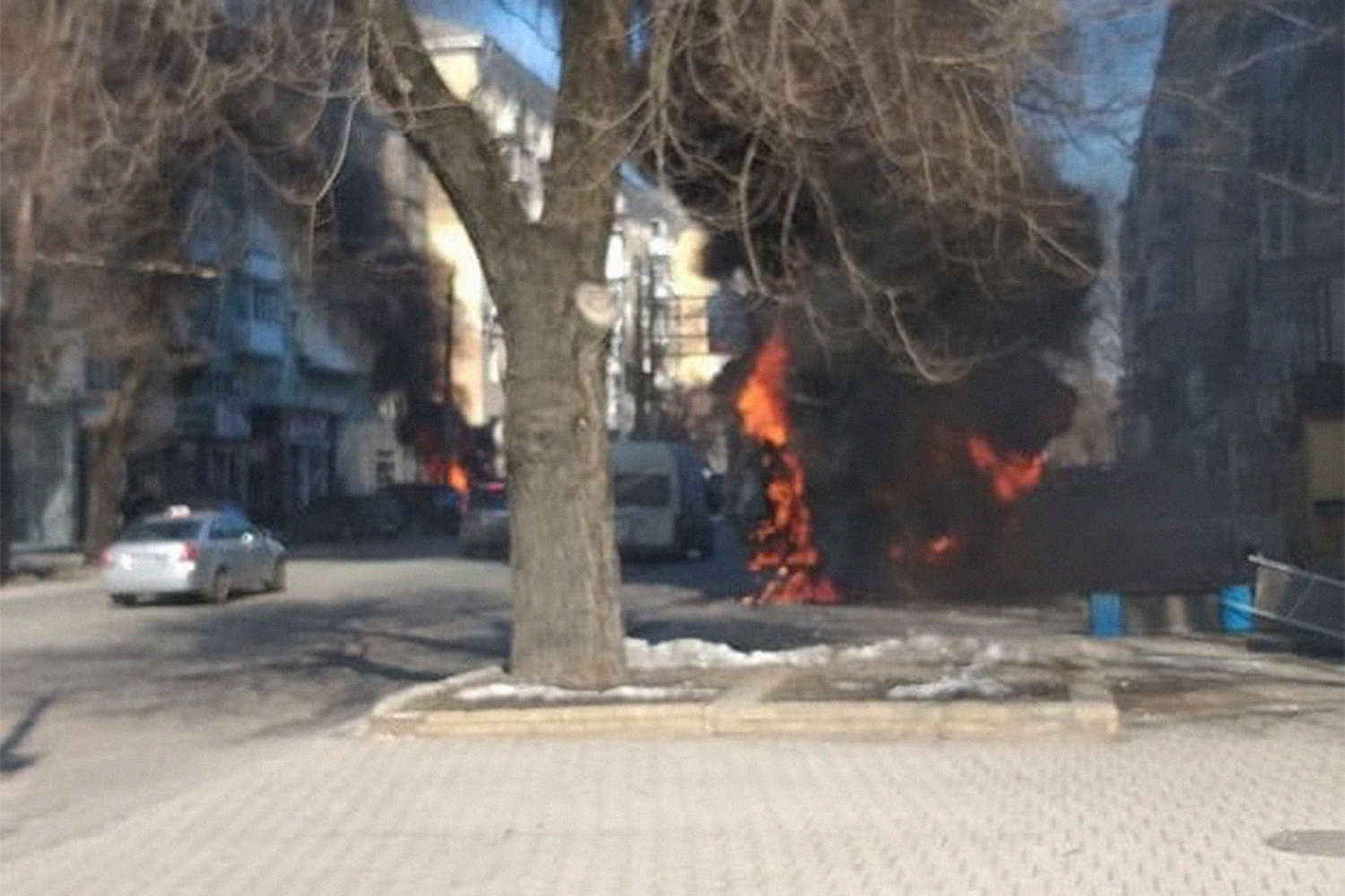 На месте работают пожарные расчеты, прибывают кареты скорой помощи. Часть обломков упала возле библиотеки имени Крупской. Есть сведения о загоревшейся машине.
