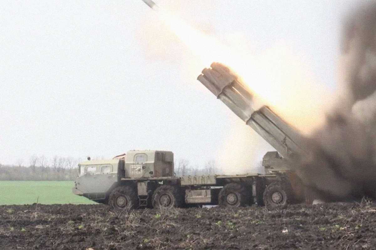 Минобороны РФ опубликовало кадры работы расчетов реактивных систем залпового огня (РСЗО) «Смерч» в ходе спецоперации на Украине.