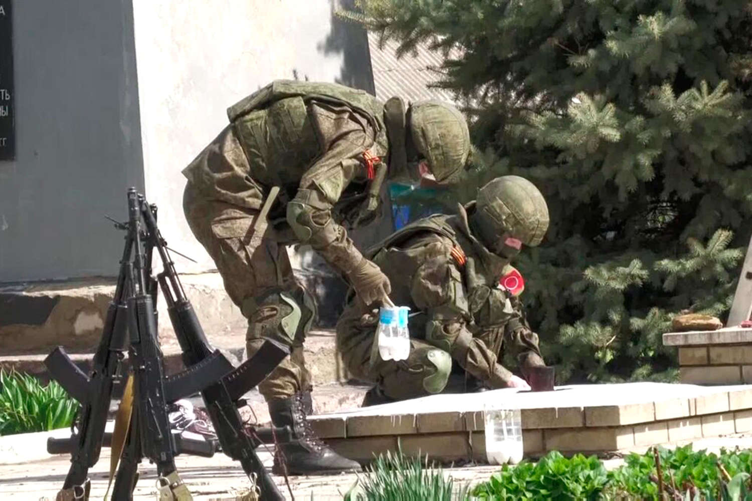 Отмечается, что они пришли на призыв местных жителей, в том числе помогли зажечь Вечный огонь.