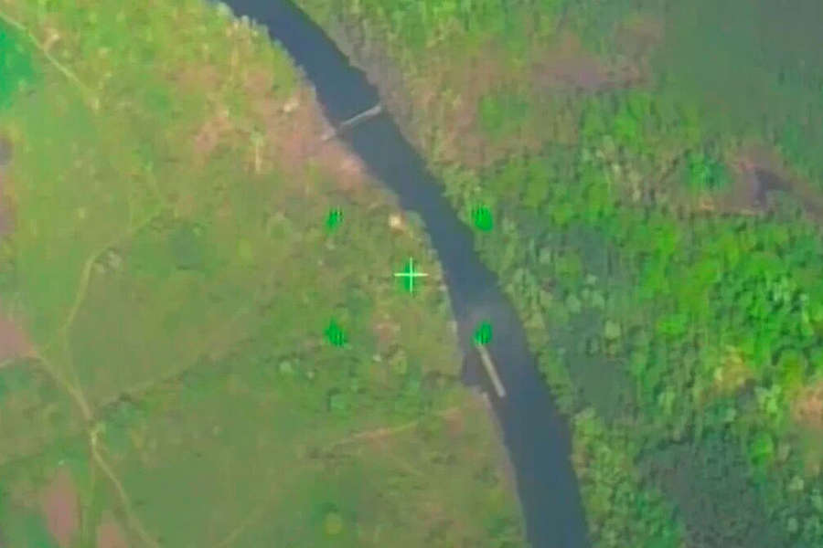Министерство обороны России показало видео нанесения ракетных ударов по понтонной переправе вооруженных сил Украины.