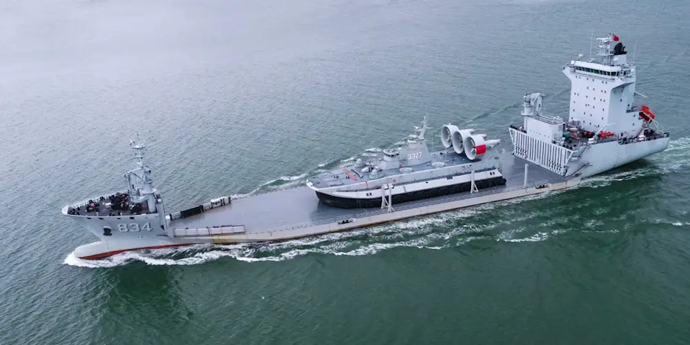 Государственное телевидение Китая обнародовало изображение тяжелой погружной транспортный платформы Yinmahu, способной перевозить боевые корабли. Об этом сообщает Insider.