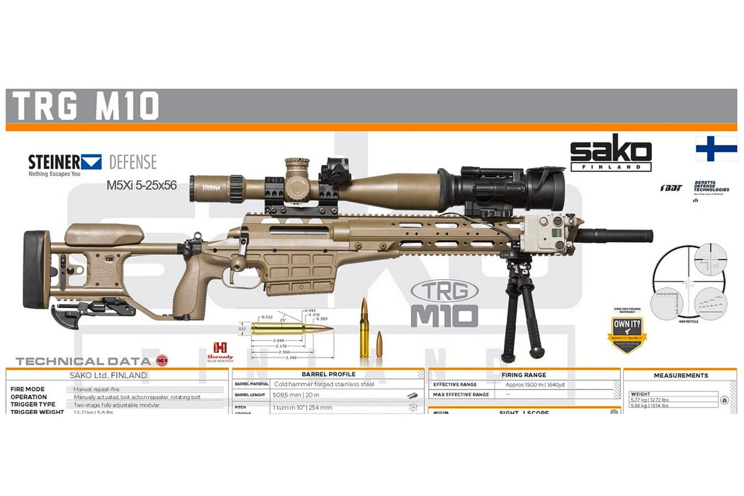 Силы обороны Финляндии закупят для пехоты высокоточные винтовочные системы TRG M10 и снайперское снаряжение производства финской компании Sako Ltd. Об этом сообщает Army Recognition.
