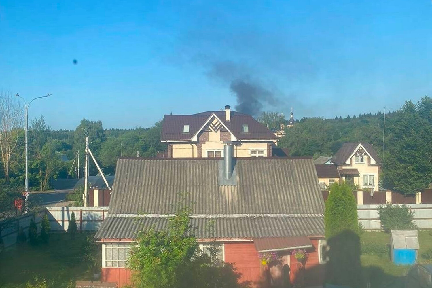 По данным ТАСС, от рухнувших обломков одного из беспилотного летательного аппарата загорелась хозяйственная постройка.