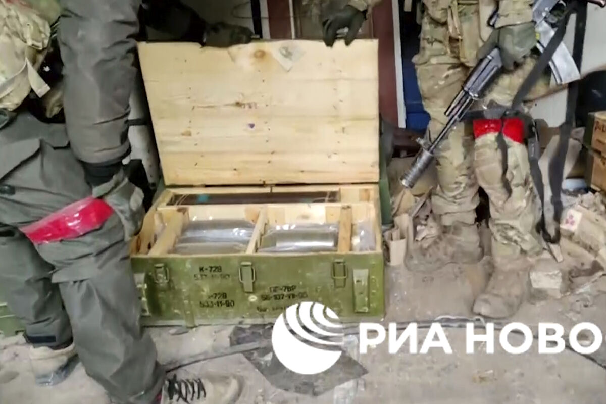 В одном из ящиков содержится партия снарядов для автоматического гранатомета иностранного производства — кумулятивные гранаты к РПГ-7 и метательные заряды к нему. Один из бойцов предположил, что обнаруженные снаряды произведены в Болгарии или Польше.