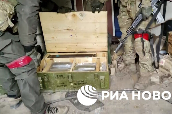 На кадрах видно одноэтажное строение, внутри которого находится большое количество ящиков с боеприпасами. Некоторые из них маркированы на кириллице, но многие обозначены латинскими буквами. При этом на ряде ящиков есть наклейки и маркировки с указанием даты производства 2023 года.