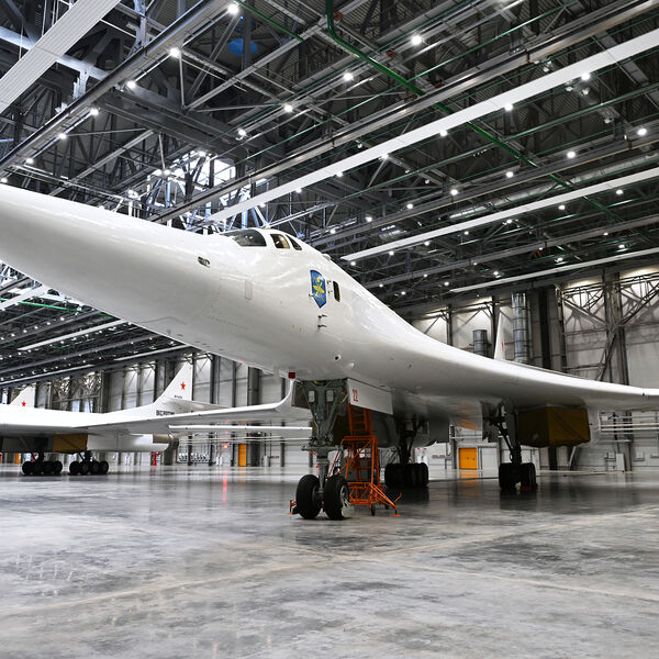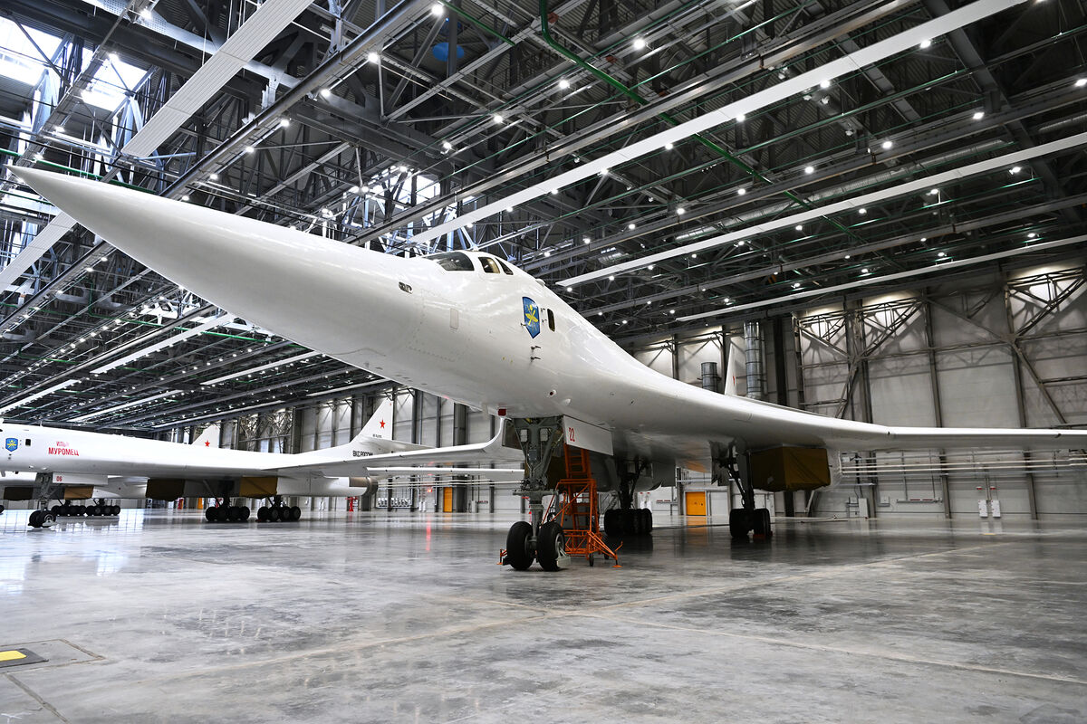 Путин посетил один из новых цехов и осмотрел четыре глубоко модернизированных стратегических ракетоносца Ту-160М. Самолеты являются элементом так называемой ядерной триады России.