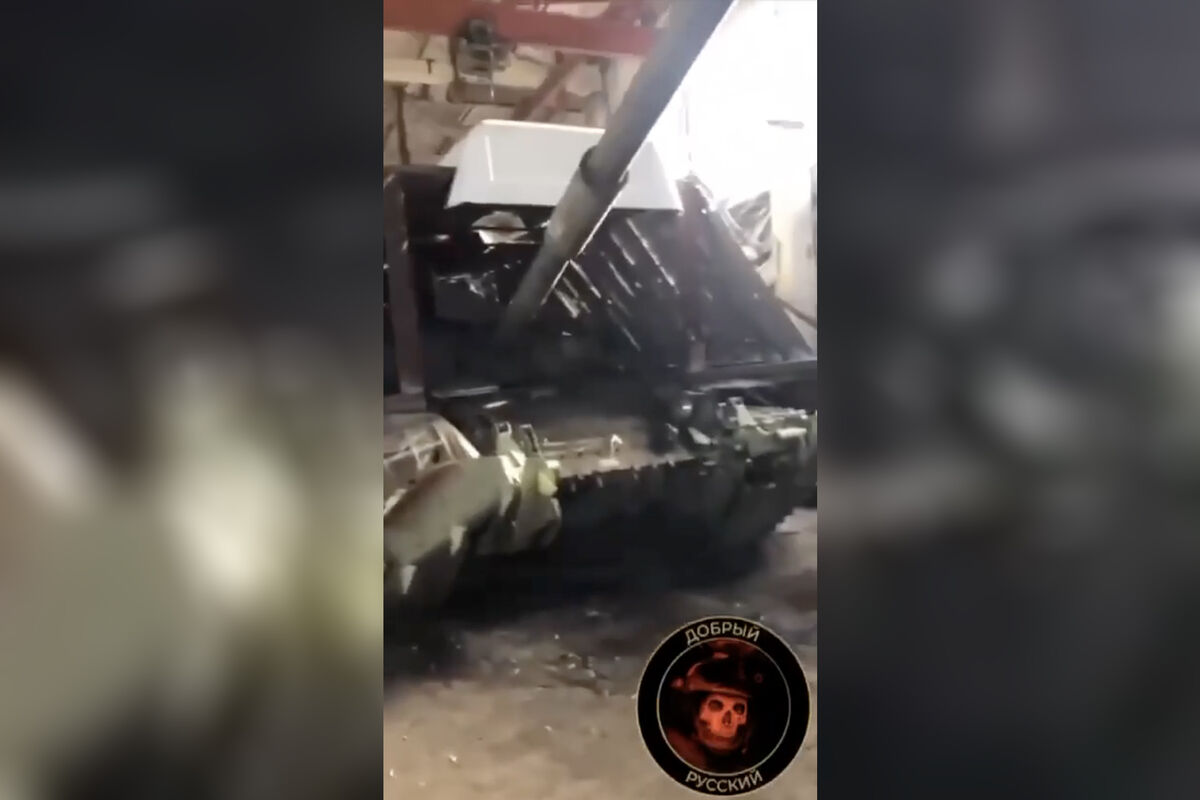 Речь идет о защите от атак беспилотных летательных аппаратов (БПЛА), которую называют «мангалом». При этом замеченный на поле боя танк обладает его усовершенствованной версией.