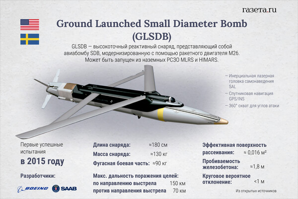 В публикации отмечается, что GLSDB были разработаны концернами Boeing и Saab Group, их запускают из реактивных систем залпового огня (РСЗО) HIMARS.