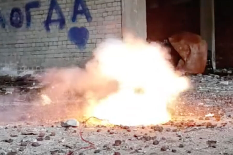 Федеральная служба безопасности показала кадры с испытанием взрывчатки, которую планировали применить для терактов против руководителей подразделений министерства обороны в Москве. Видео ТАСС предоставили в спецслужбе.