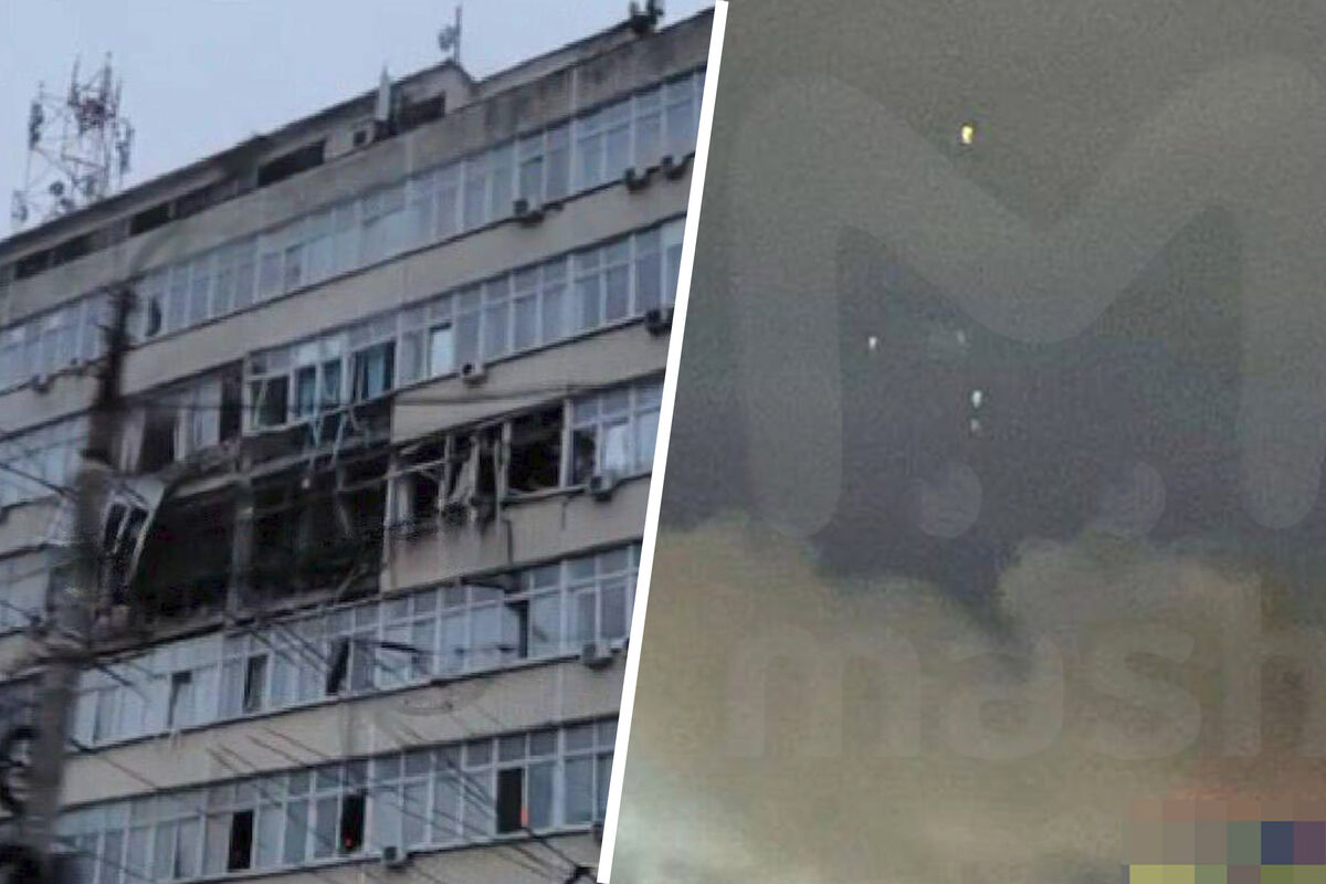 «Система противовоздушной обороны сбила 13 БПЛА — один из них упал на здание предприятия, начался пожар», — пишет Mash.
