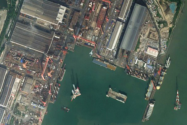 Китай завершает строительство новейшего авианосца на верфи Guangzhou Shipyard International в южной провинции Гуандун. Об этом сообщает американский телеканал CNN со ссылкой на спутниковые снимки Planet Labs.