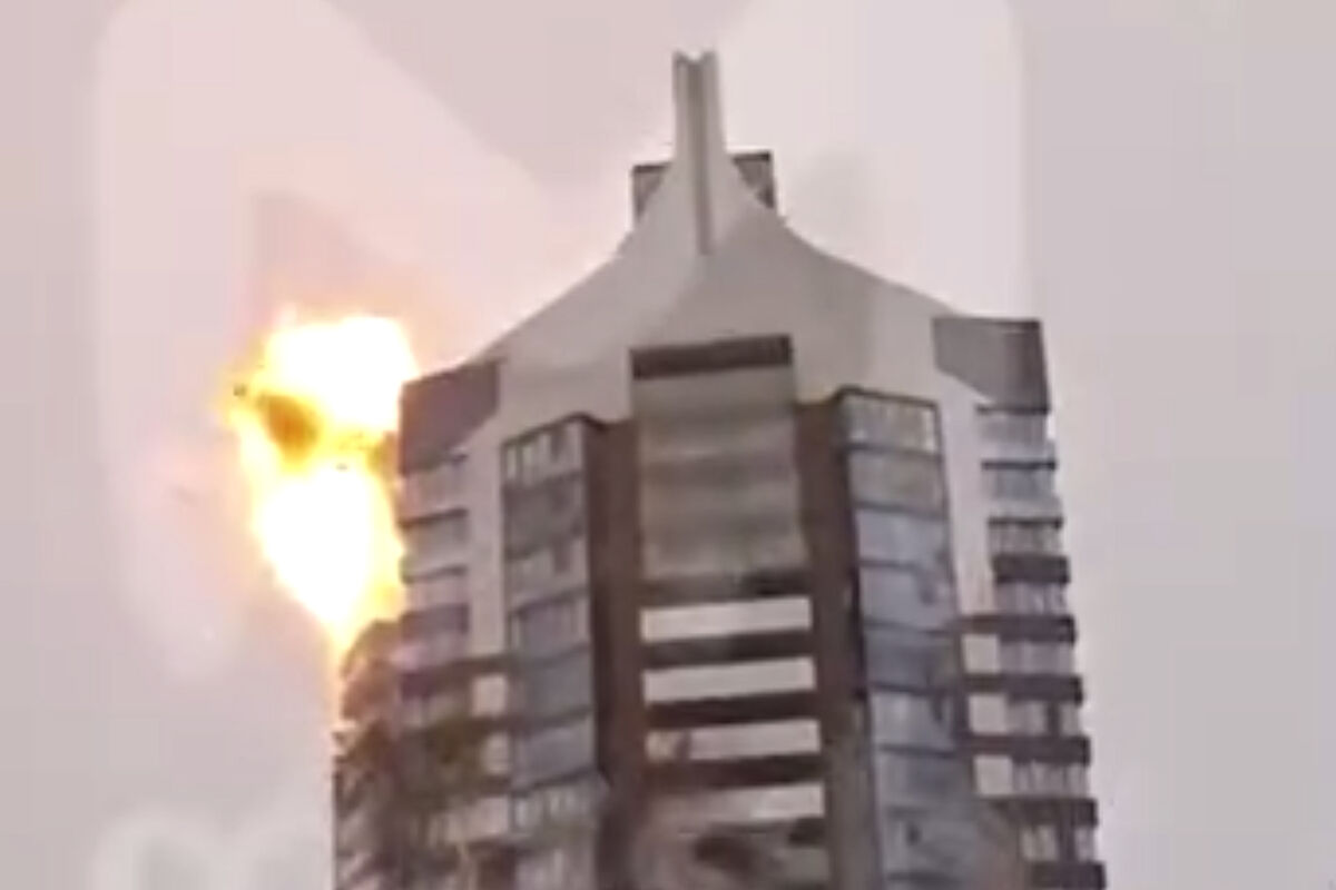 Telegram-канал Baza опубликовал видео с моментов удара беспилотника по элитному ЖК «Манхэттен» в Казани.