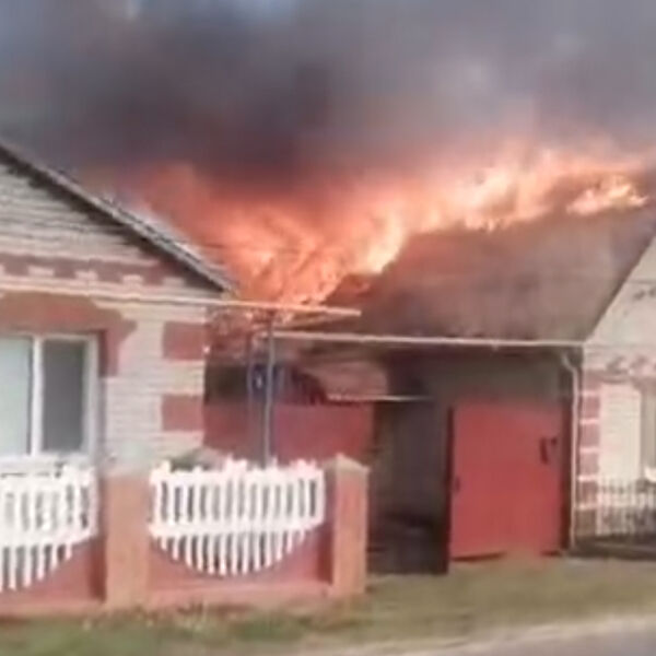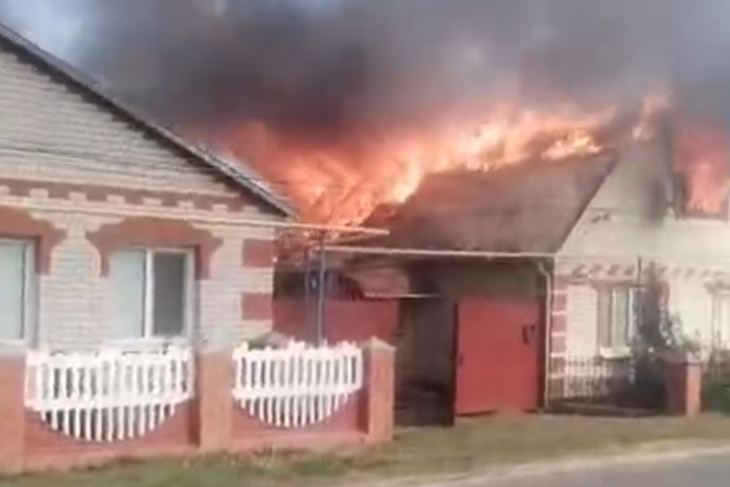 На видео видно охваченное огнем двухэтажное кирпичное здание, в котором могли находиться российские военные. Когда именно было снято видео, не уточняется.