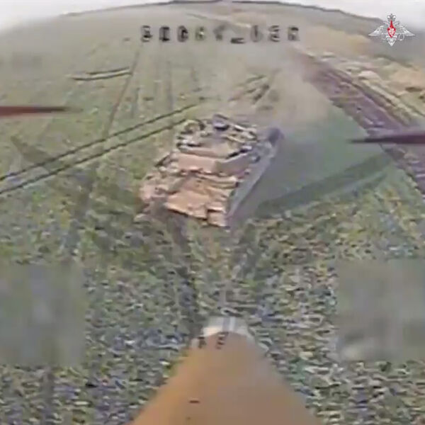 На кадрах видно попадание дронов в танк и его возгорание. Ведомство уточнило, что вражеский танк атаковали с помощью расчетов FPV-дронов испытательного центра перспективных беспилотных технологий «Рубикон».