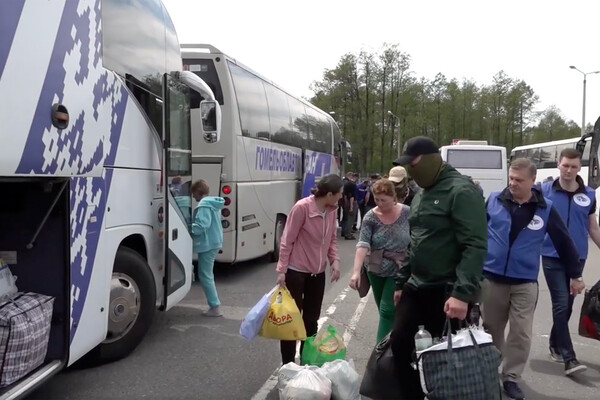 На кадрах запечатлены мирные жители в салоне автобуса, многие из которых не скрывают слез от долгожданного возвращения домой.