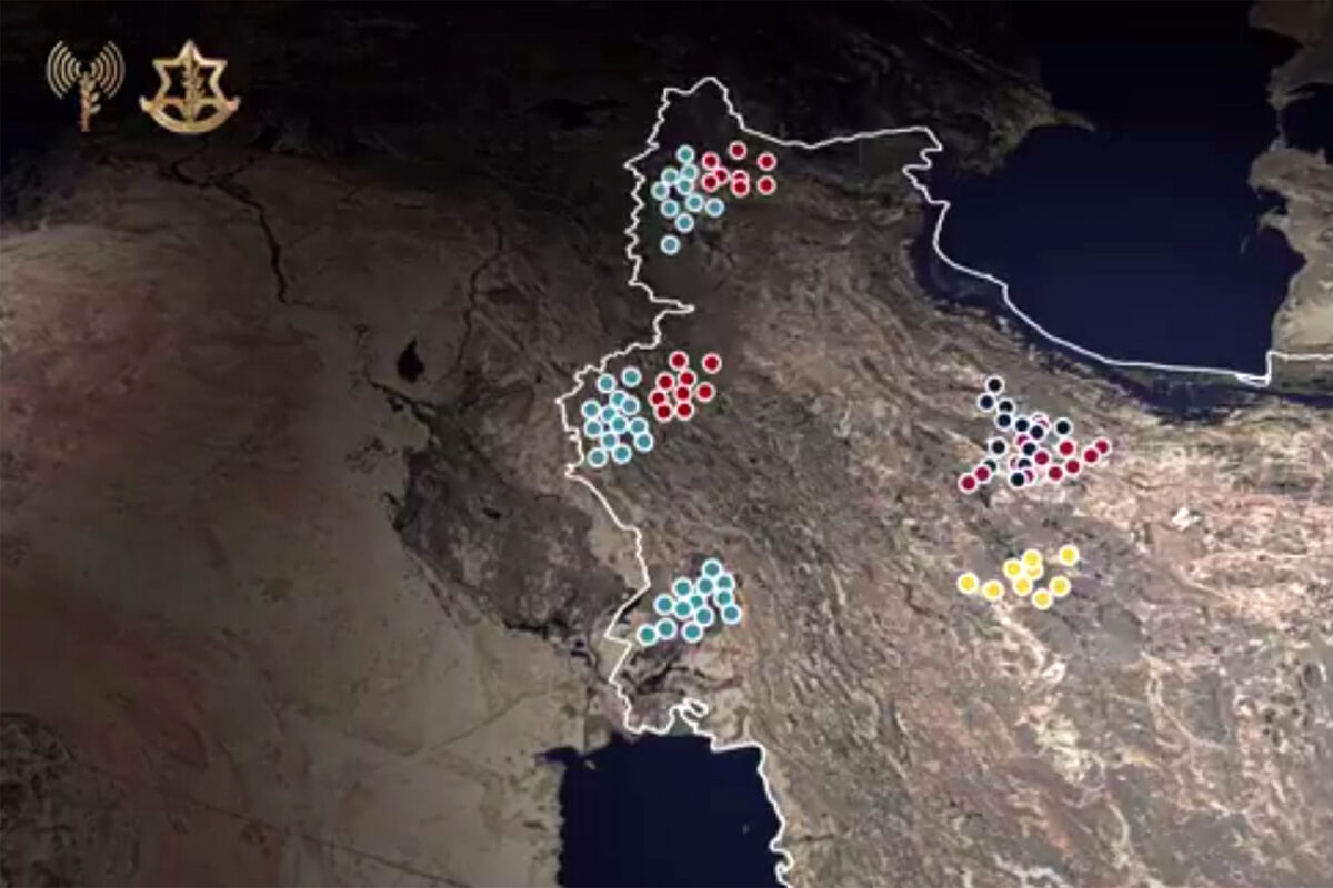 На ролике видно, что израильские дроны и ракеты поразили пять крупных групп целей в нескольких провинциях Ирана.