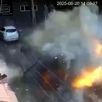 Судя по записи с камеры, инцидент произошел накануне днем. В ролике двое мужчин вытаскивают скутер из багажника автомобиля, на котором его привезли. Через несколько секунд мотороллер детонирует.