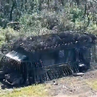 Как отмечает канал, танк был оснащен «почти всеми известными импровизированными средствами защиты» от ударных беспилотников. На крыше бронемашины видны насаженные на распущенные металлические тросы FPV-дроны.