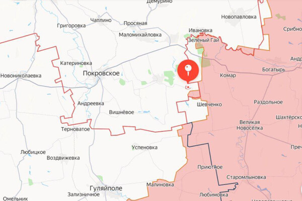 Также можно заметить, что карта окрашена в два цвета. По всей видимости, красным отмечена территория, которую бойцам армии РФ уже удалось взять под свой контроль. В частности, можно увидеть населенный пункт Великая Новоселка, который был взят еще в конце января, или Комар, о взятии которого стало известно в июне.