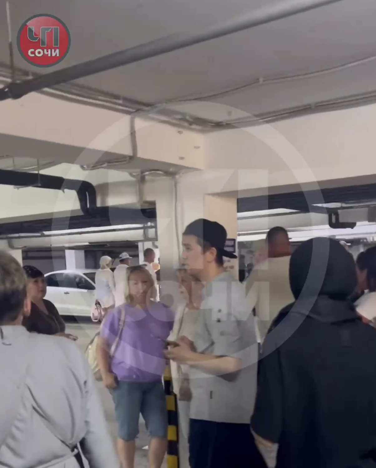 На кадрах видно, что встревоженные люди столпились на парковке.