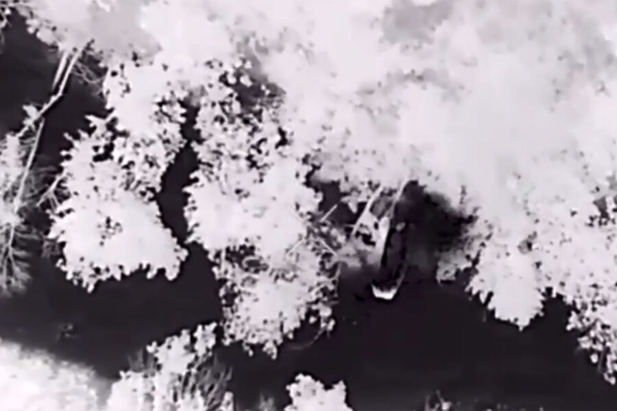 По его словам, одна из лодок ВСУ вместе с десантом была уничтожена на ходу. Вооруженные силы РФ нанесли удар по технике украинских войск с помощью FPV-дрона.