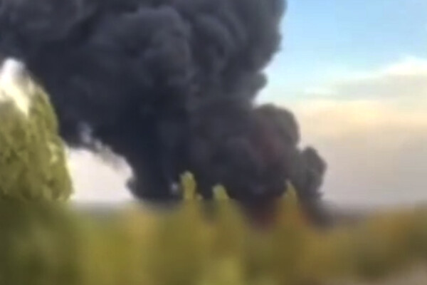 Украинский город Чернигов заволокло черным дымом после взрывов. Видео публикует местный Telegram-канал «Труха».