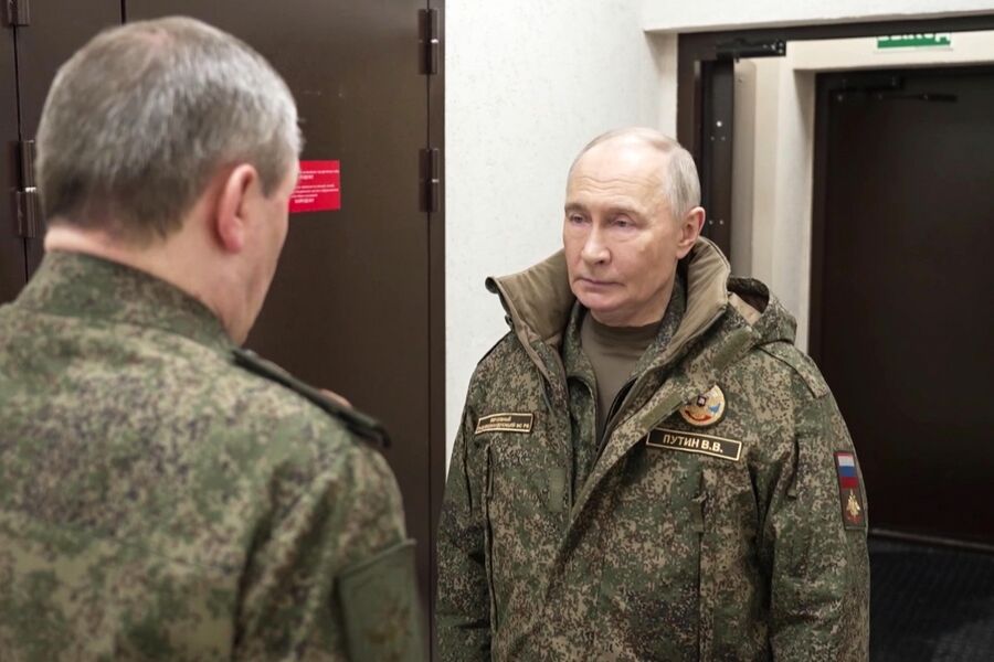 Президент РФ Владимир Путин во вспомогательном пункте управления Объединенной группировки войск, 27 декабря 2025 года