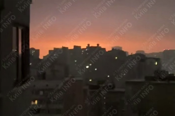 В ролике видно яркое зарево, поднимающееся на горизонте над многоэтажками. На масштабность атаки указывает то, что свечение продолжалось долгое время.
