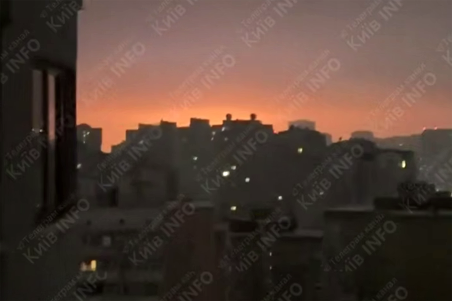 В сети появились кадры мощного ночного удара по Киеву. Видео опубликовал Telegram-канал «Київ ІНФО».