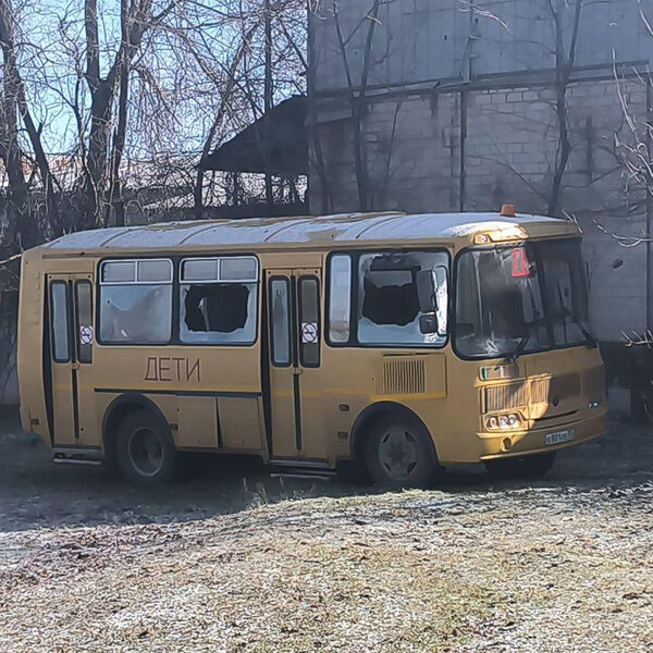 Он опубликовал фото с места происшествия, на котором видно поврежденные осколками школьные автобусы и территорию вокруг школы.