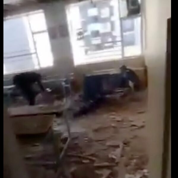 На видео, опубликованном представителем МИД Ирана, десятки мальчиков расположились в узком коридоре учебного заведения. При этом учебные классы серьезно разрушены: в окнах выбиты стекла, частично разрушены пол, стены и потолок.
