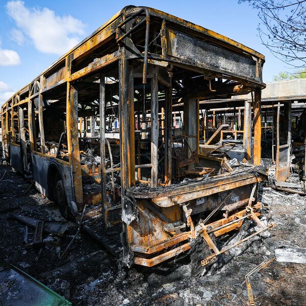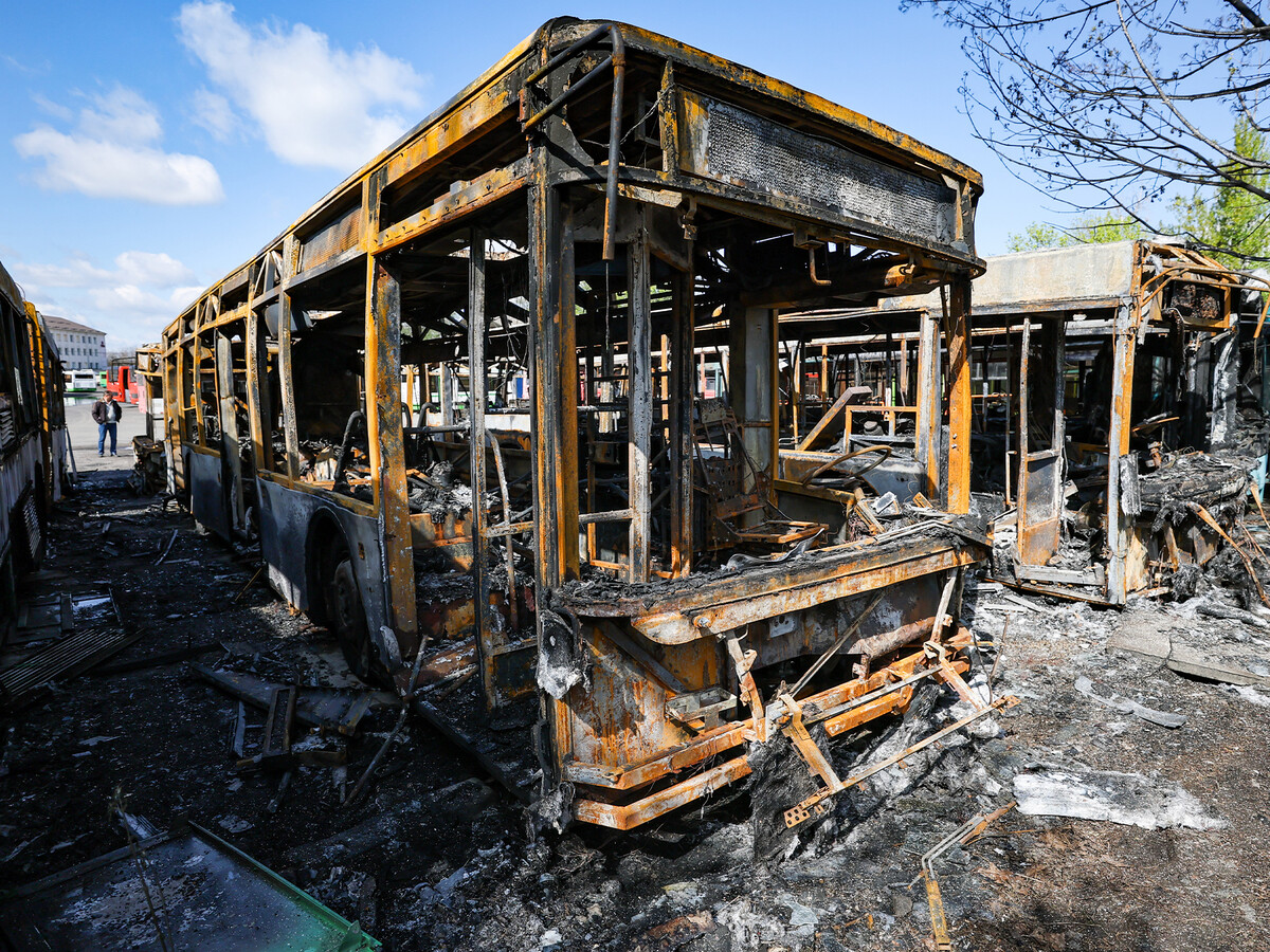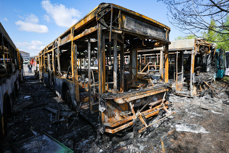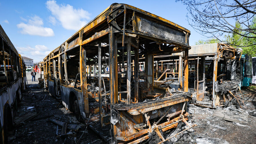 Вооруженные силы Украины (ВСУ) атаковали автобусный парк в Куйбышевском районе Донецка 19 апреля. На снимках, появившихся в сети, можно увидеть последствия этой атаки. Показаны сгоревшие автобусы, у которых выбиты стекла и поврежден корпус. Также огонь почти полностью уничтожил салон в некоторых транспортных средствах, включая водительское и пассажирские сиденья. От некоторых автобусов остался лишь железный корпус.