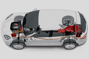 Гибридный привод позволяет автомобилю снизить расход топлива и при умеренном ускорении передвигаться исключительно на электротяге. Также электромотор помогает бензиновому двигателю при старте с места. В Touareg и Cayenne электроагрегат разработки Bosch встроен непосредственно в трансмиссию. Однако автомобиль с гибридным приводом существенно дороже: в частности, в России Porsche Cayenne с бензиновым мотором мощностью 300 л.с. стоит от 3,1 млн рублей, а автомобиль с гибридной силовой установкой мощностью 333 л.с. — 4,4 млн рублей.