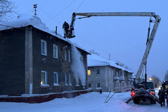 В Кемерово снежные массы повредили крышу многоквартирного дома
