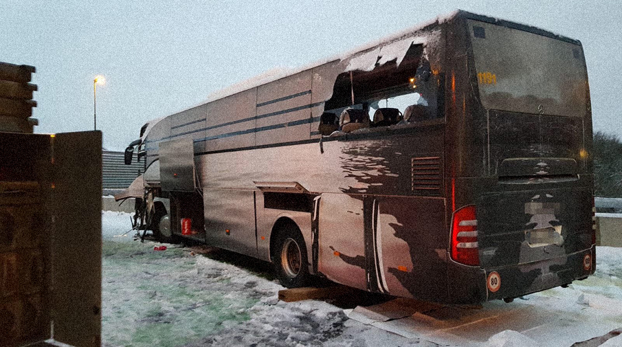 После столкновения тот вылетел в придорожную канаву. Судя по фотографиям с места ДТП, удар был очень сильный — передняя часть фуры оказалась полностью искорежена. При этом кузов автобуса, несмотря на гораздо меньшие габариты, визуально пострадал намного меньше.